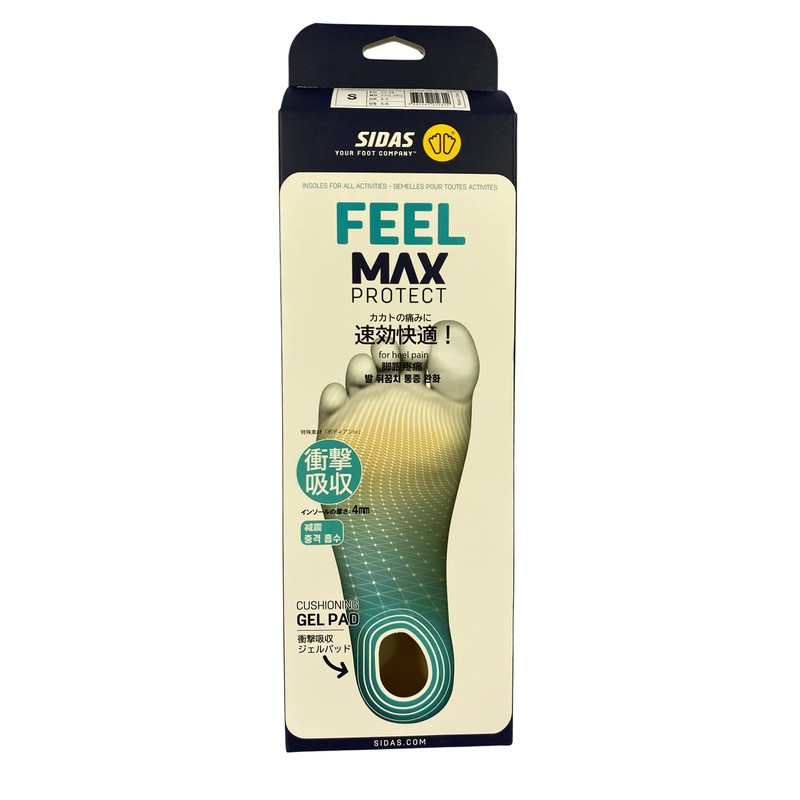 SIDAS 320764104 Max Protect Feel, M, US Men's Size 7.5 - 9.5 (25.0 - 26.5 cm), Insole, Shock Absorption, Lightweight, Everyday Use, Junior