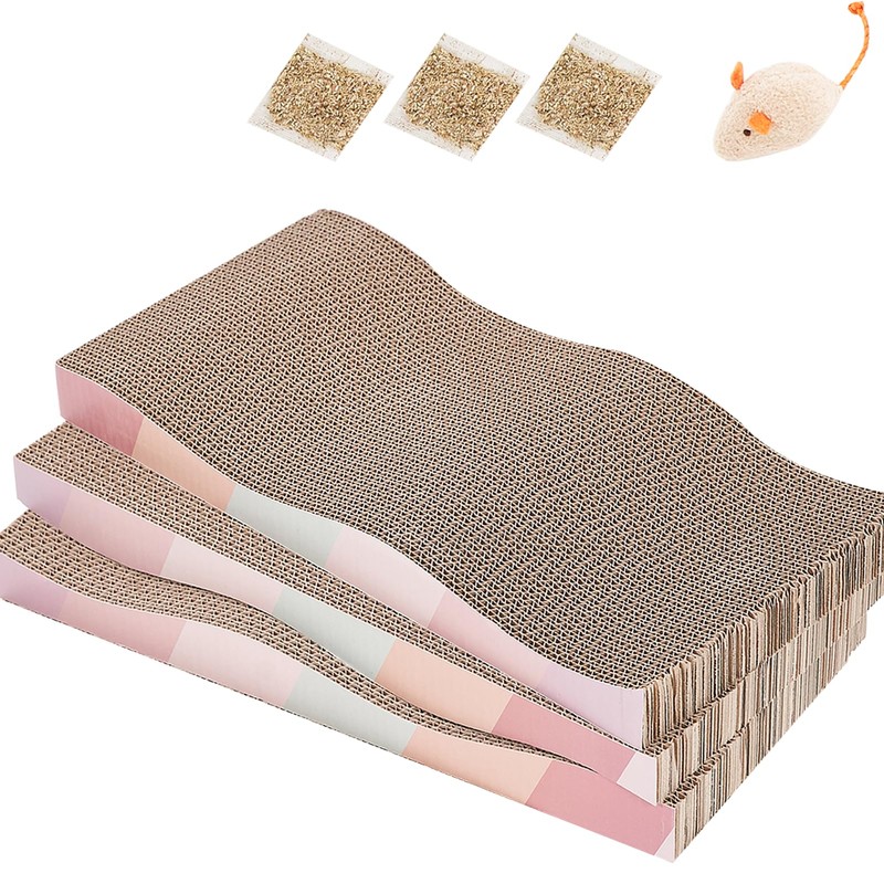 - 【CURVED WAVE】:Curve designs make it easier for your cats to lie down and stretch their bodies while grinding their nails