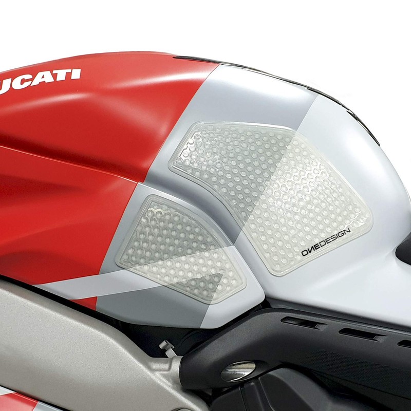 - Side tank pads for Ducati models: V4 1100_2018/2020 - V4 S 1100_2018/2020 - V4 S 1100 CORSE_2019/2020 - V4 SPECIAL 1100_2018/2020 in the variants. Black and transparent available.