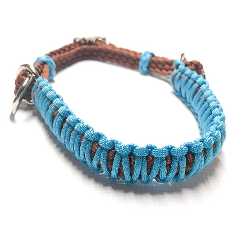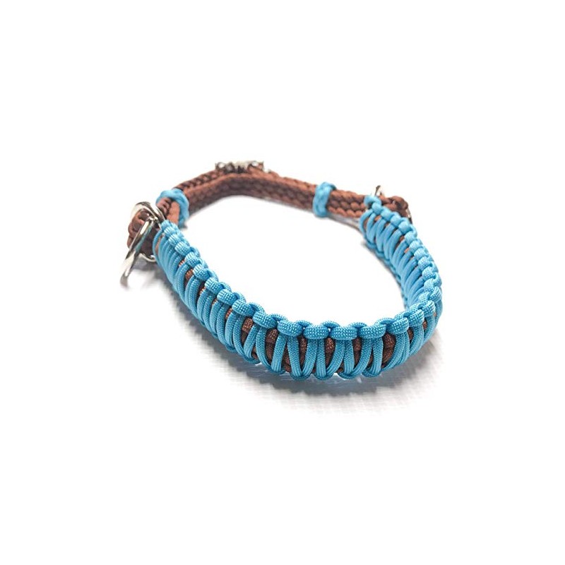 side pull hackamore with a whoa bitless bridle attachment horse tack neon turquoise and chocolate brown