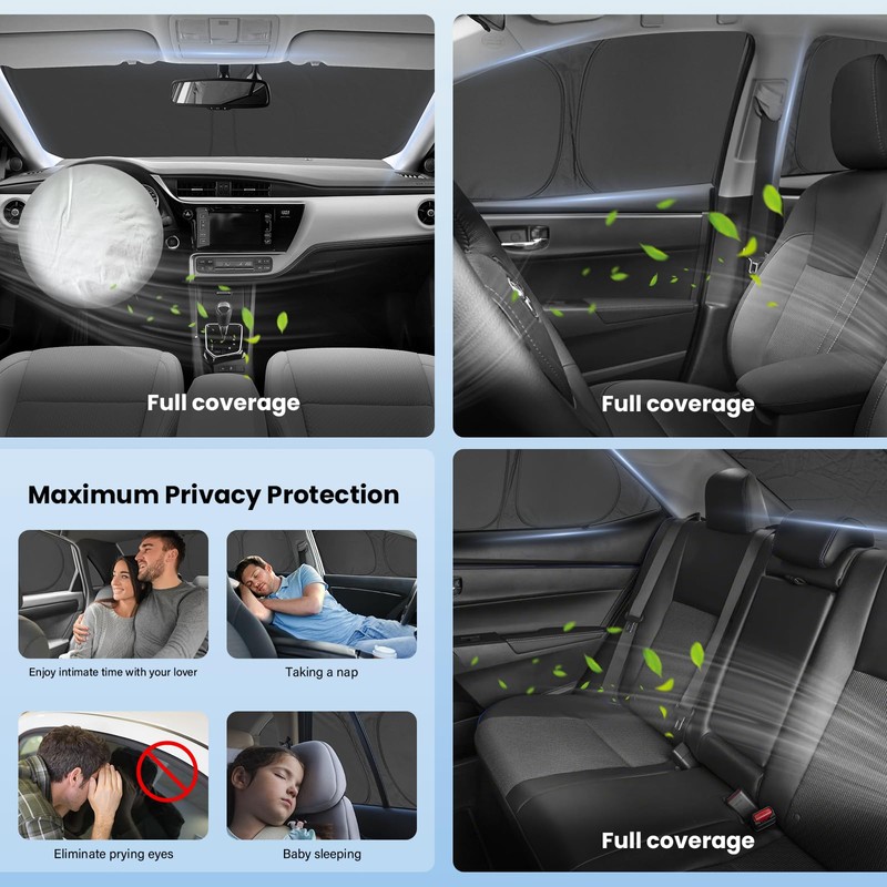Unlike other mesh sunshade, full window sunshades are made of 2024 upgraded high-density fabric and do a good job of protecting from sunshine, giving you all-round protection for privacy.