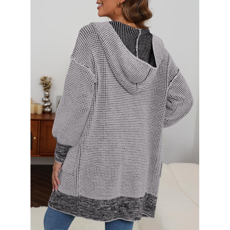 Sidefeel Hooded Sweaters for Women Open Front Chunky Knit Cardigans Oversized Coat Medium Grey Large