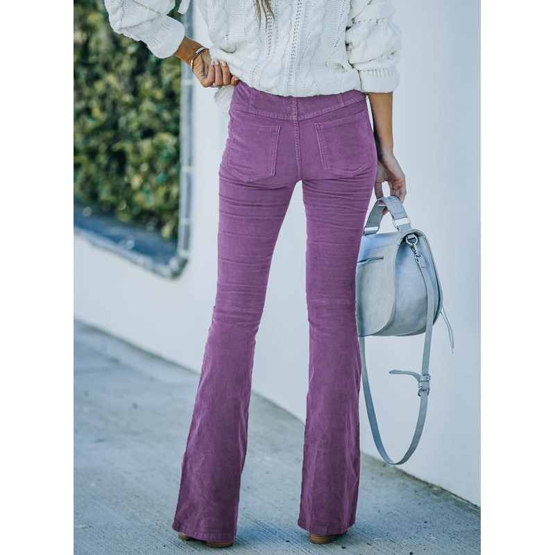 Sidefeel Women's Flare Pants Elastic Waist Corduroy Bell Bottom Trousers Large Purple