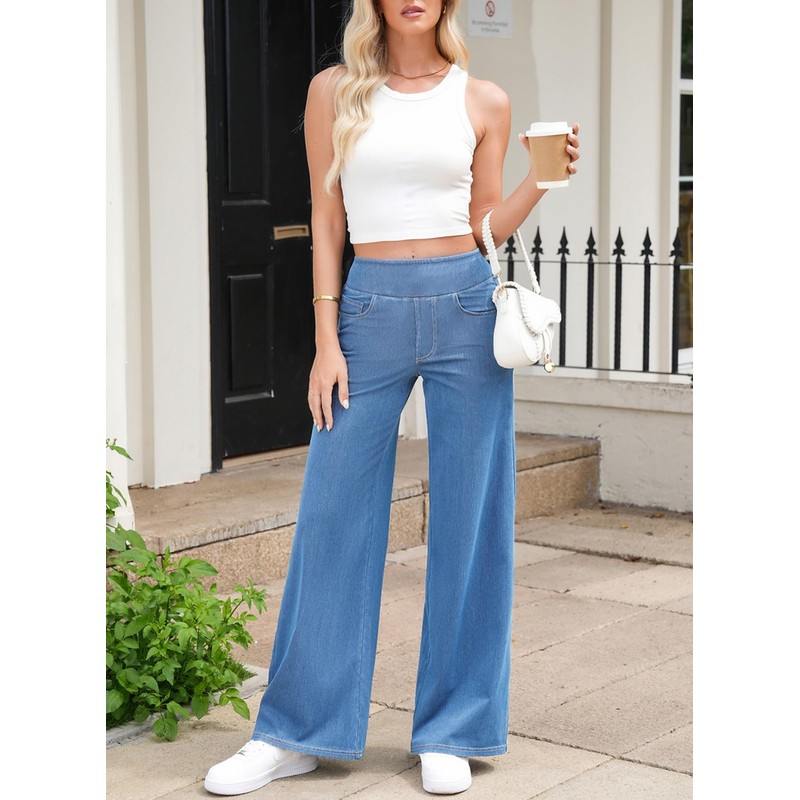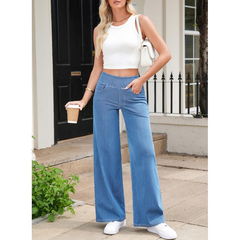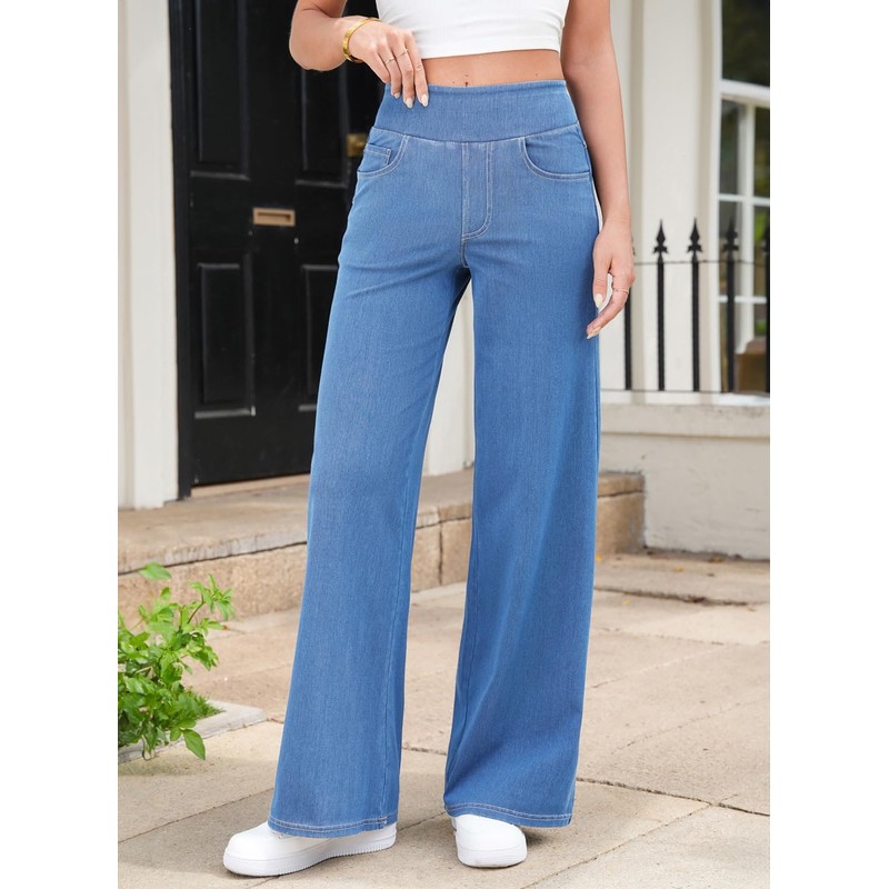 Sidefeel Womens High Waisted Tummy Control Wide Leg Jeans Soft Stretchy Comfort Fit Pull On Denim Pants Iceland Blue Size 2