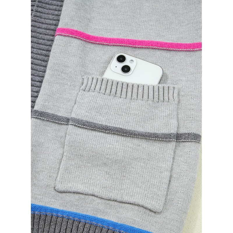 Sidefeel Womens Striped Cardigan 2025 Casual Long Sleeve Open Front Loose Knit Lightweight Fall Sweaters Gray Medium