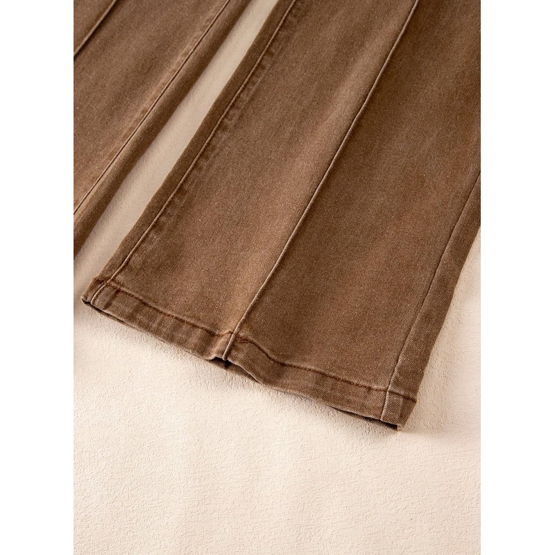 Sidefeel Womens Wide Leg Jeans Casual Baggy High Waisted Stretch Denim Pants Size 12 Brown