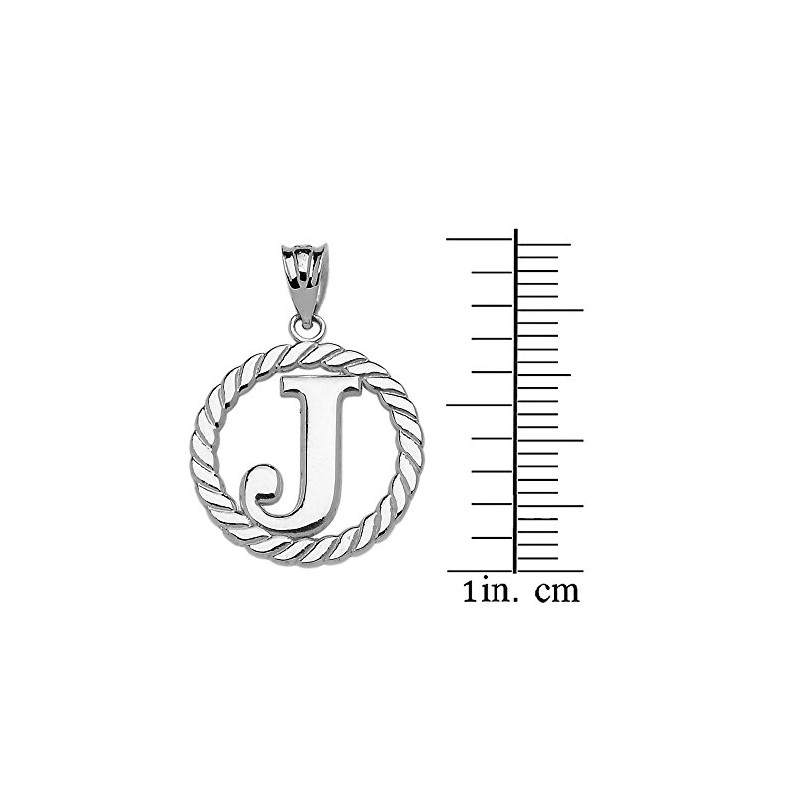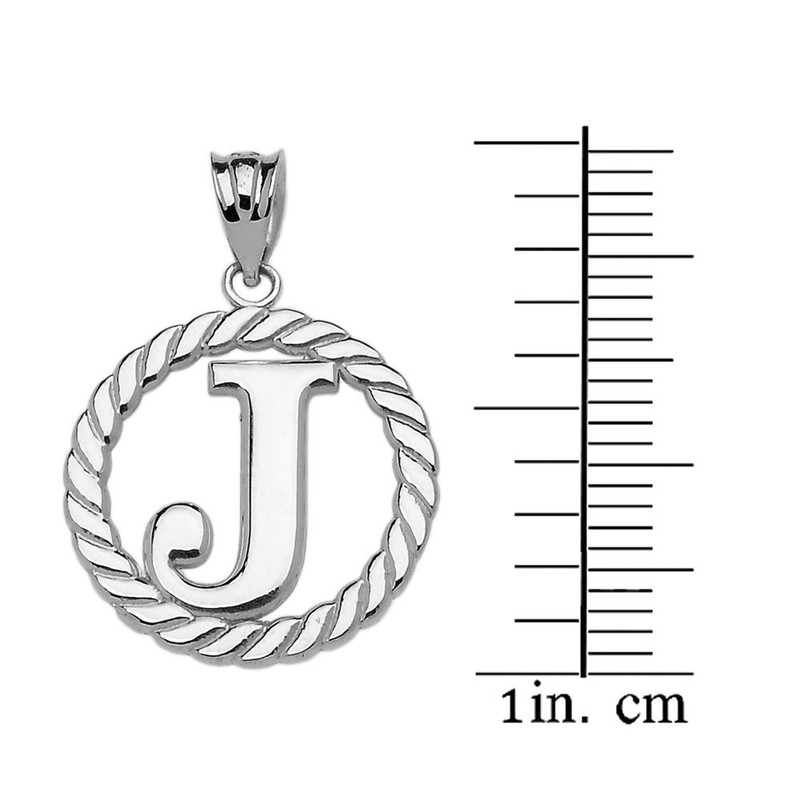 - personalized name initial pendant necklace in roped circle showcasing the block upper-case alphabet letter "J"