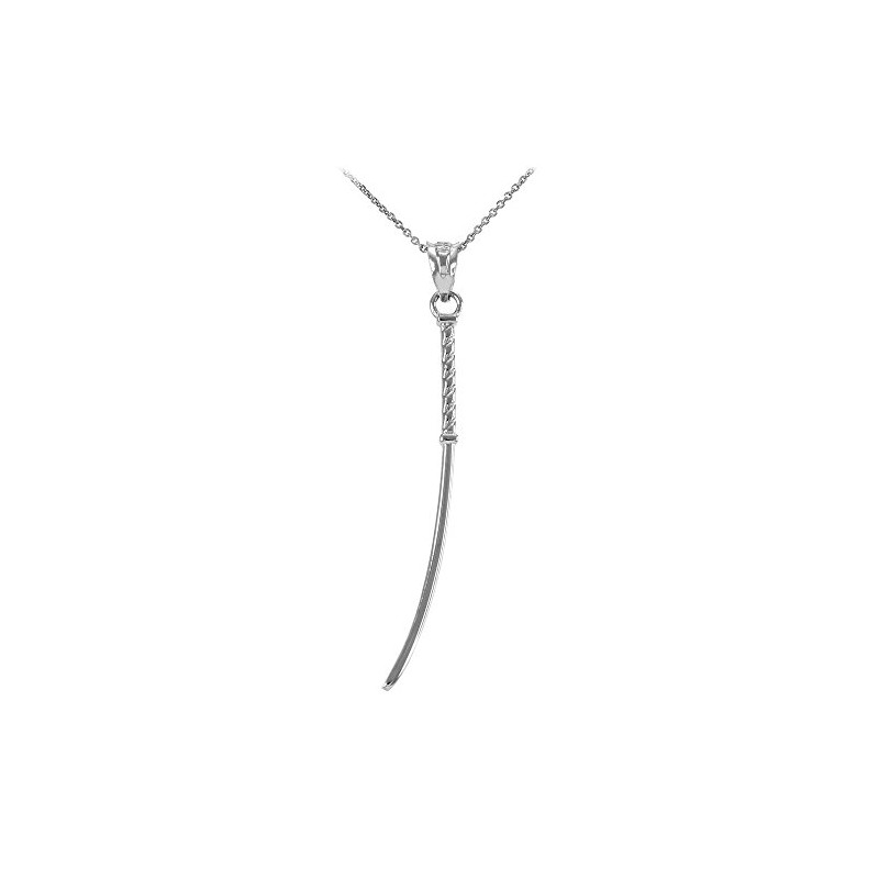• Asian-style katana/samurai pendant dangling from its thin yet durable solid silver chain necklace