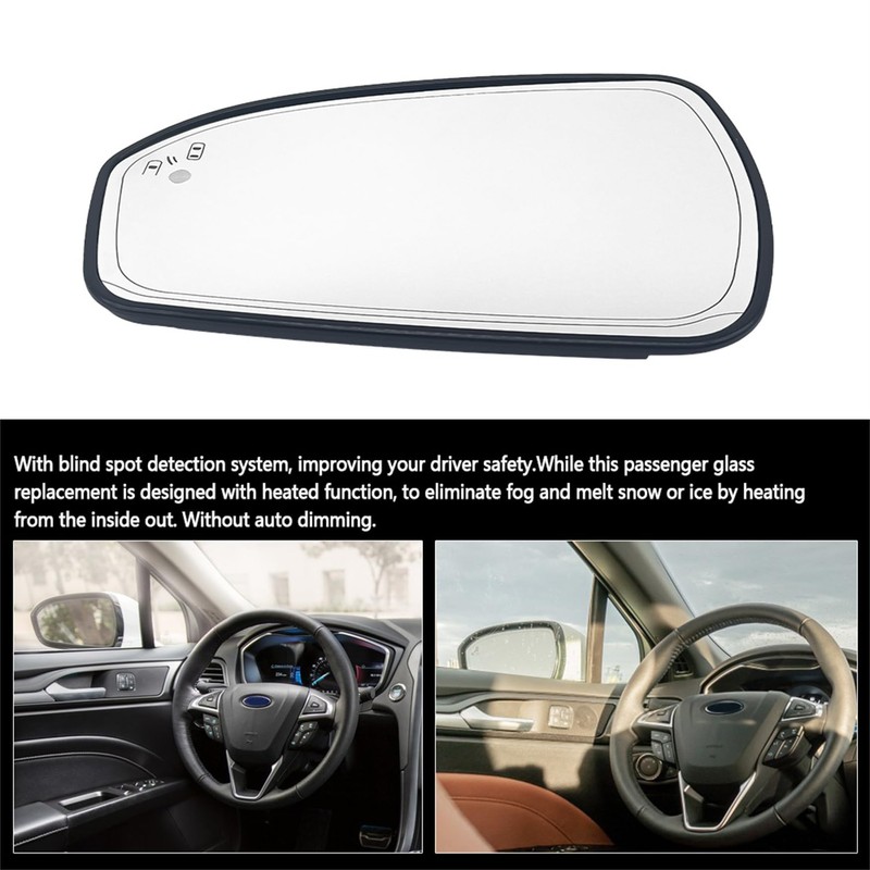 - Power Heated: Designed with heated function, which can eliminate fog and melt ice or snow by heating from the inside out, enhance driving safety. This mirror glass only has heating and blind spot functions, has No auto dimming function