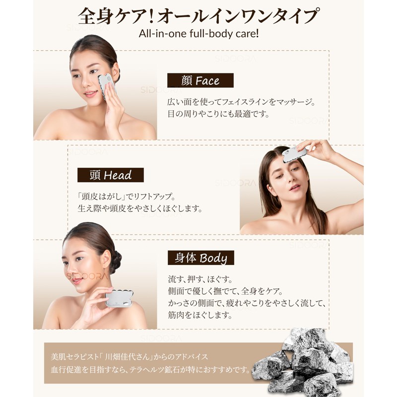 - ✅【テラヘルツ99.9%】SIDOORAのかっさは、純度の高いテラヘルツ鉱石で製造されています。テラヘルツ鉱石は、1秒間に1兆回振動し、その振動が細胞を活性化させ、新陳代謝を促進する効果があります。また、熱伝導率が高く手の体温が伝わりやすいため、ハンドマッサージを受けているかのような心地よい温熱効果を体感できます。