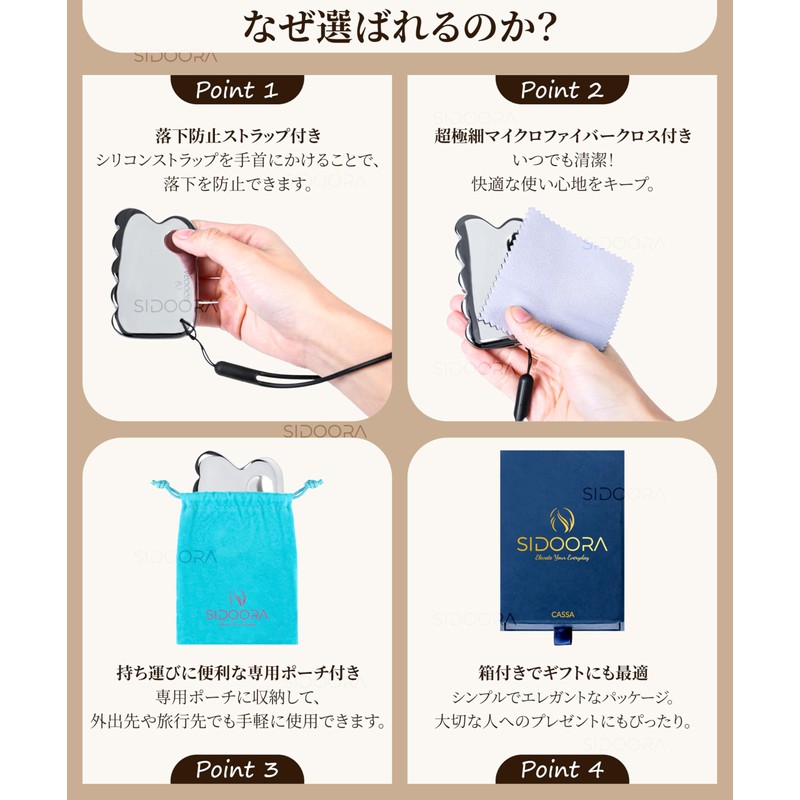 【SIDOORA】カッサ かっさプレート テラヘルツ鉱石 グアシャ 業界愛用のテラヘルツかっさ!顔用 ボディ用 頭皮マッサージ用 ストラップ&ポーチ&箱付き