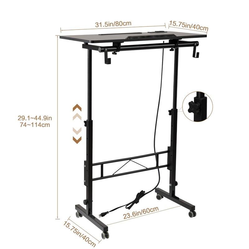 • Mobility and Stability Combined: Equipped with four lockable wheels, this desk offers easy mobility and stability. Once positioned, simply lock the wheels for a secure workspace for your daily tasks