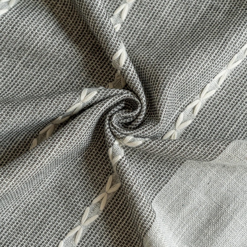 SIELUNO Round tablecloths, Linen Round tablecloths with Tassels, dustproof and Waterproof Farmhouse Round tablecloths, Kitchen-Dining Room Round Fabric tablecloths-Gray Stripes