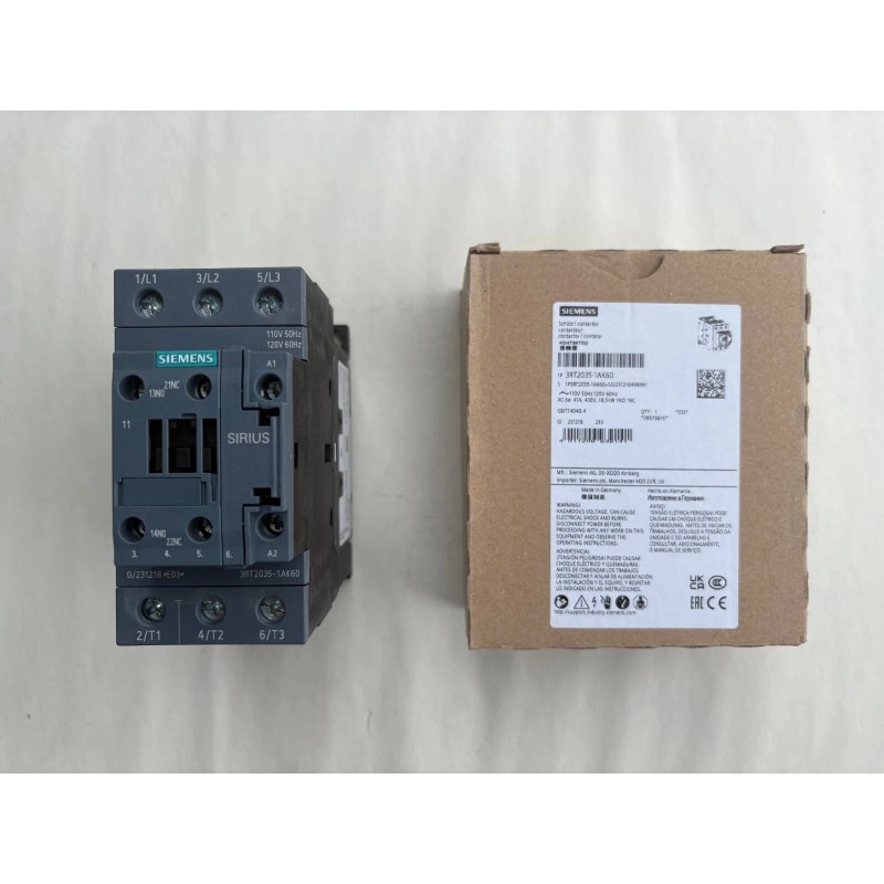 Siemens 3RT2035-1AK60 3 pole contactor - 40 AMP - 120 volt - 1 N.O./1 N.C. aux