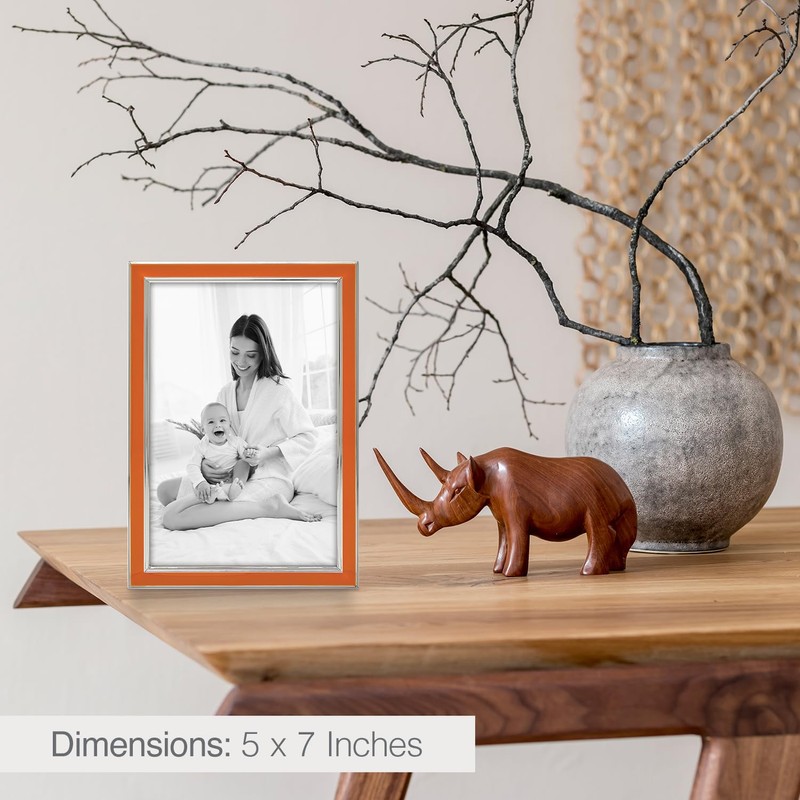 Siena Silver & Enamel Picture Frame, Tarnish Resistant Finish, Perfect Photo Frame for any End Table, Credenza, Shelf, or Nightstand, Silver Trim, Orange, 5x7
