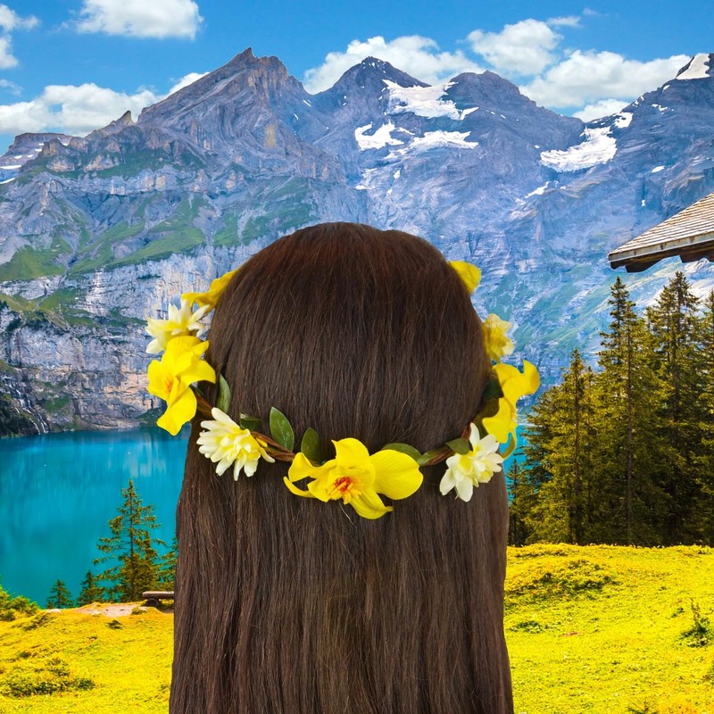 - Are you still looking for the right accessory for a wedding, birthday, Oktoberfest, folk festival or a fancy dress party? Then this Sienna hair wreath with yellow flowers from BF Souvenirs is definitely the right thing.