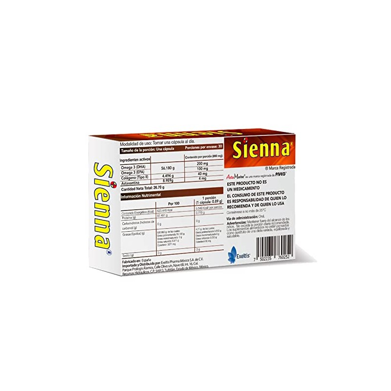 EXELTIS RETHINKING HEALTHCARE - Sienna Suplemento Alimenticio a Base de Colágeno Tipo II, Omega 3 (DHA y EPA) y Astaxantina con 30 Cápsulas. 🚀 Producto más vendido con miles de clientes satisfechos. Construcción robusta y atención al detalle. 🎯 Producto más buscado del mes. Ideal para quienes buscan lo mejor en calidad y estilo. Producto auténtico con satisfacción total asegurada. ¡No te quedes sin el tuyo y aprovecha esta oportunidad única!