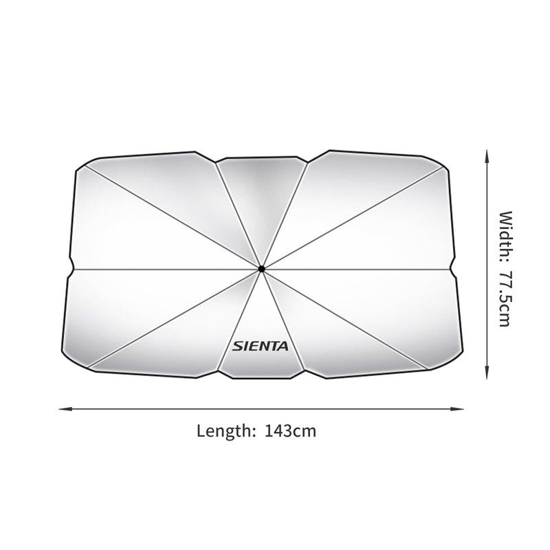 - [With Logo, Add Charm to Your Car] This car sunshade umbrella has a SIENTA logo on the silver surface and the included storage bag. Light blocking function allows you to decorate your car and add accent to your parked car. Compatible models: Compatible with Sienta 10 Series, 170 Series, 80 Series, X G Z Hybrid E-4, etc