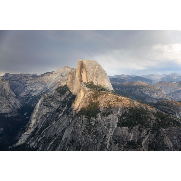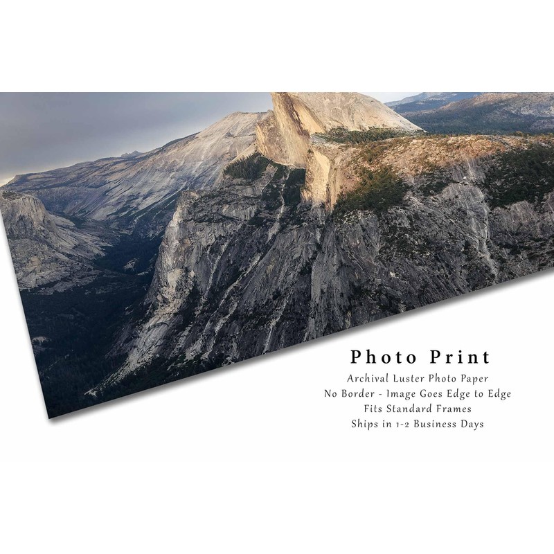 Sierra Nevada Photography Print (Not Framed) Picture of Half Dome Illuminated by Sunlight Under Moody Sky in California Yosemite National Park Wall Art Nature Decor (16" x 20")