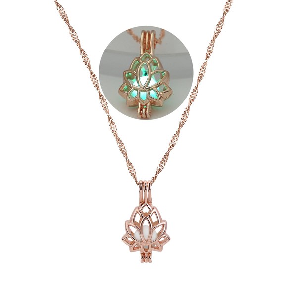 SIewee Fantasy Glow Flower Necklaces - Jewelry Charms Pendants for Women - Fairy, witches, Space Necklace (Rose gold Blue green)