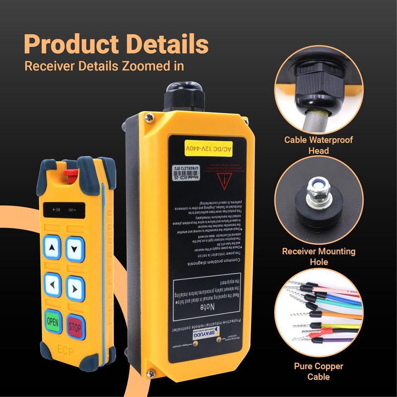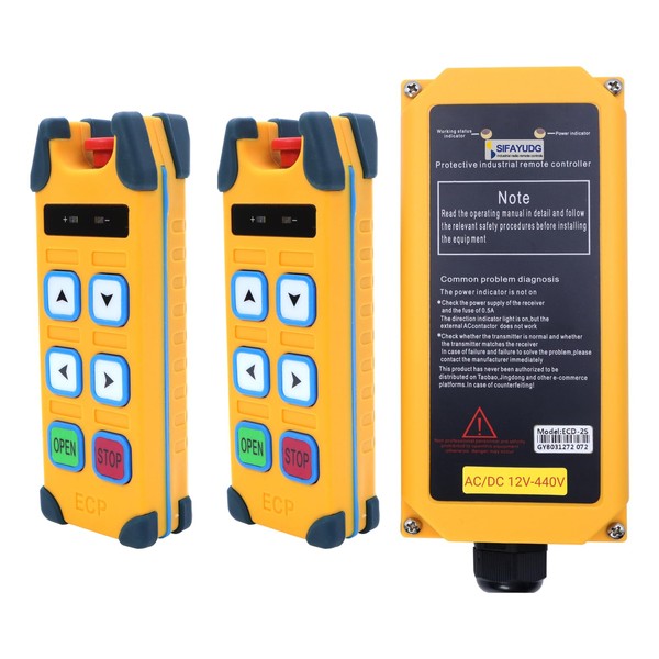 SIFAYUDG ECD-4S Crane Remote Control 4 Buttons Overhead Lifting Wireless Industrial Remote Control 12-440V Electric Hoist Winch Radio Remote Controller System (2 Transitter & 1 Receiver)