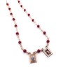 - Details: This simple and delicate necklace it is made with a 4mm red burgundy crystal beads connected with gold-plated craft wire. At the center hangs two small high-quality scapular images Length approximately: 16.5" plus 1" extension chain.