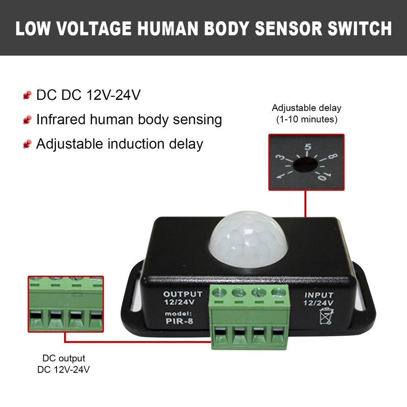 - Delay Time: 1-10 min(adjustable). Induction distance: 4-8m