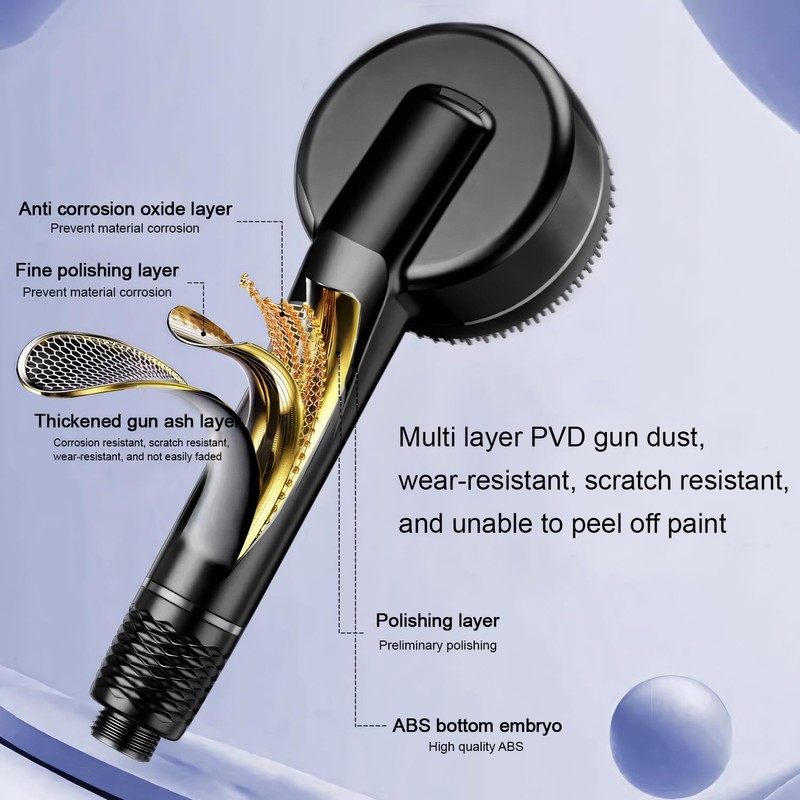 - High-quality materials: Made from premium ABS material, this showerhead is durable and resistant to damage even if dropped. The outer shell is constructed with multi-layer PVC gunmetal grey, offering scratch resistance and preventing paint peeling. The materials are sturdy and built to last.