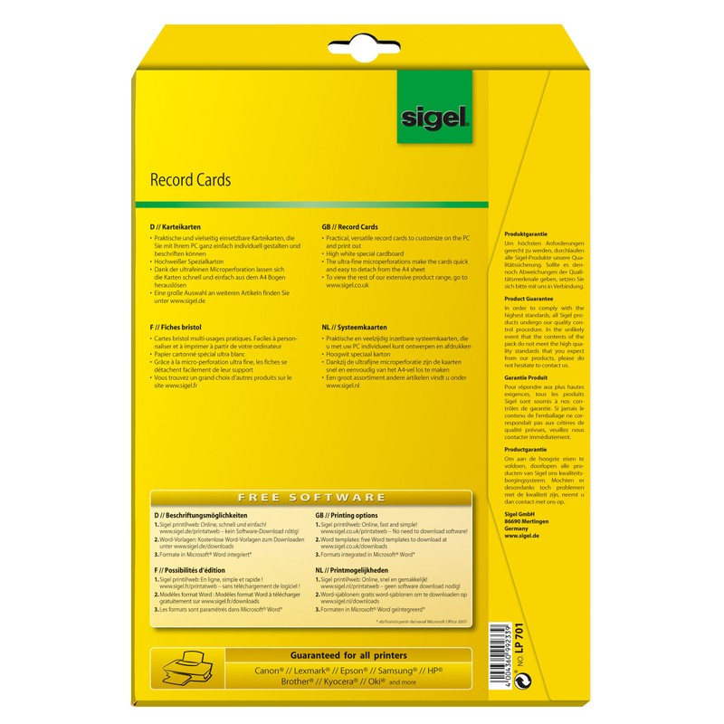 Sigel A7/ A4 PC Record Cards - White (160 Pieces)
