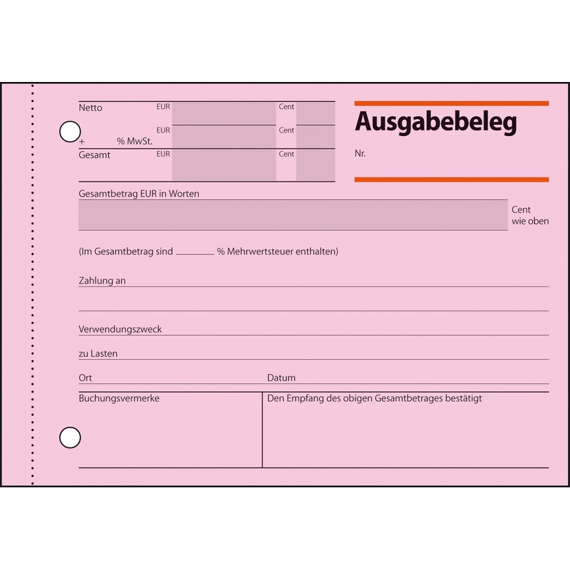 - Issue receipt, format A6 landscape, with confirmation of receipt and VAT proof
