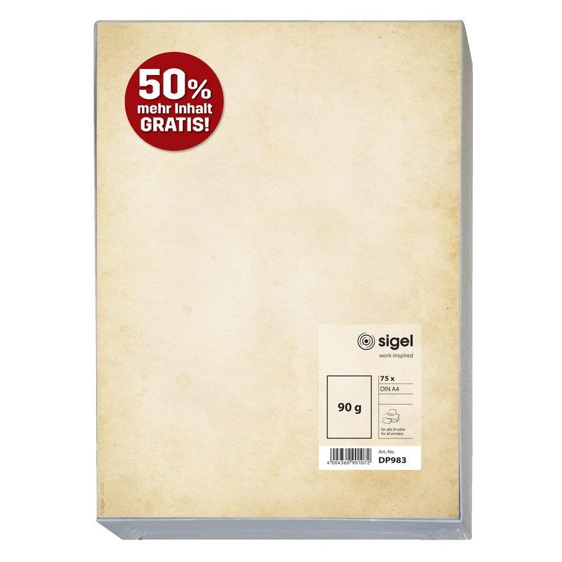 SIGEL DP983 Vintage Design Paper DIN A4 50 Sheets + 25 Sheets Free Writing Paper Printed on Both Sides 90 g Made from Sustainable Paper