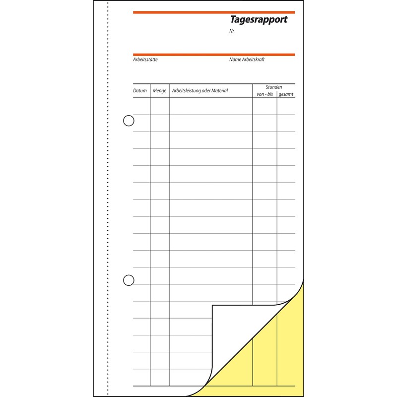- Selbstdurchschreibendes Tagesrapportbuch im Format 105 x 200 mm | Inhalt 40 Originale + 40 gelbe Kopien