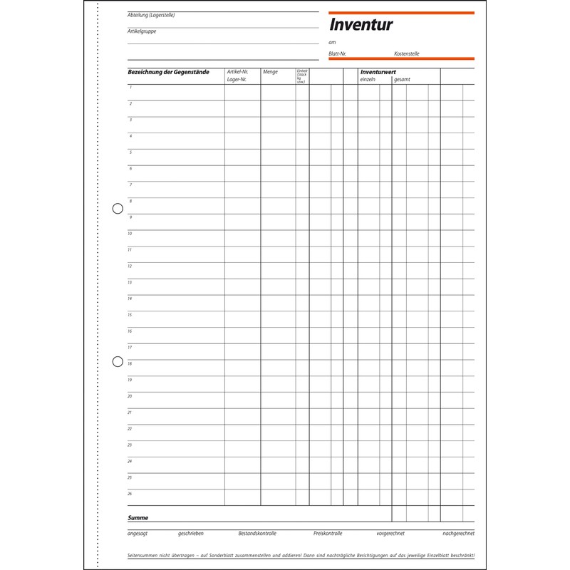 • Practical inventory book for quick and exact inventory recording, format A4