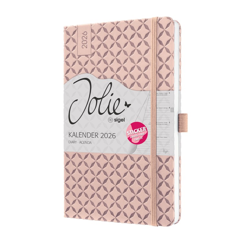 - This beautiful Jolie book calendar with colourful design and embossed faux leather cover for a soft, special feel as well as practical functions helps you be well organised both private and professional