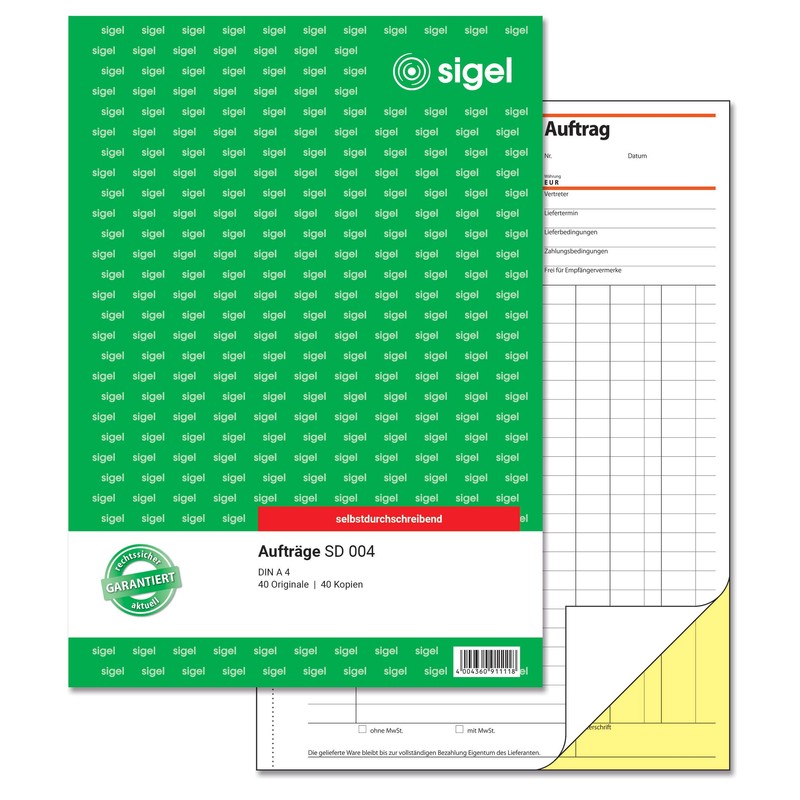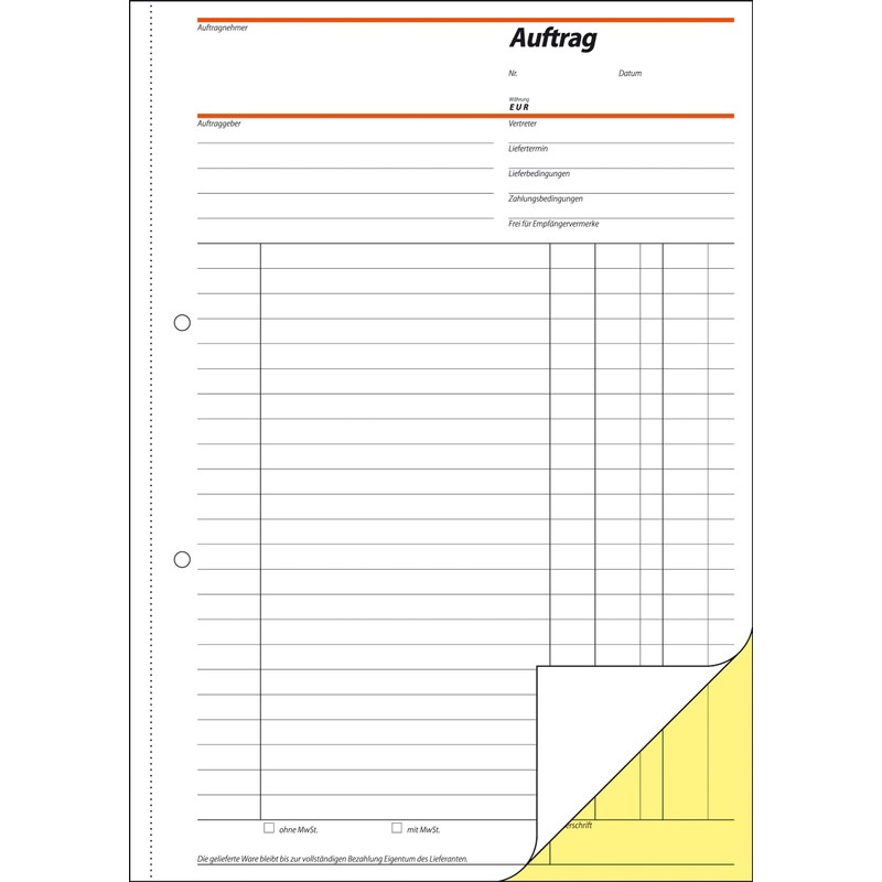 - Self-copying order form with coloured copy (yellow), format A4, in practice-oriented, clear design