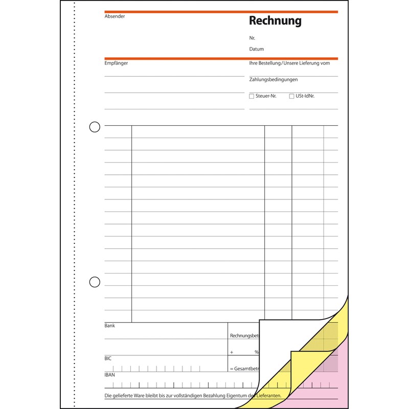 - Self-copying, each sheet with filing holes and micro-perforation, 1st and 2nd Printed sheet, field for tax number and VAT no. (SD032)