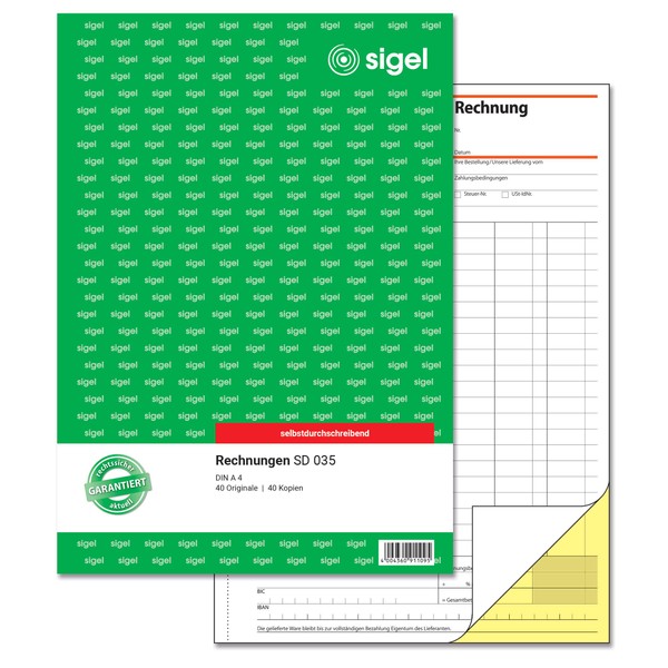 SIGEL SD035 Invoices, A4, 2 x 40 Sheets, Self-Copying, Made from Sustainable Paper