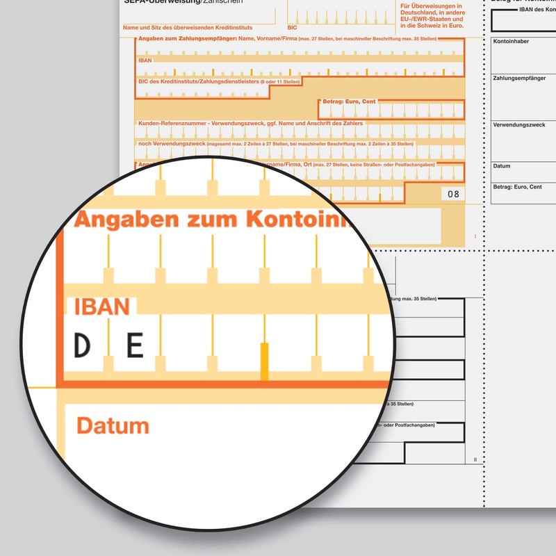 - SEPA Überweisungsvordrucke für Überweisungen in Deutschland, in EU-/EWR-Staaten und in die Schweiz in Euro - auch als Zahlschein einsetzbar