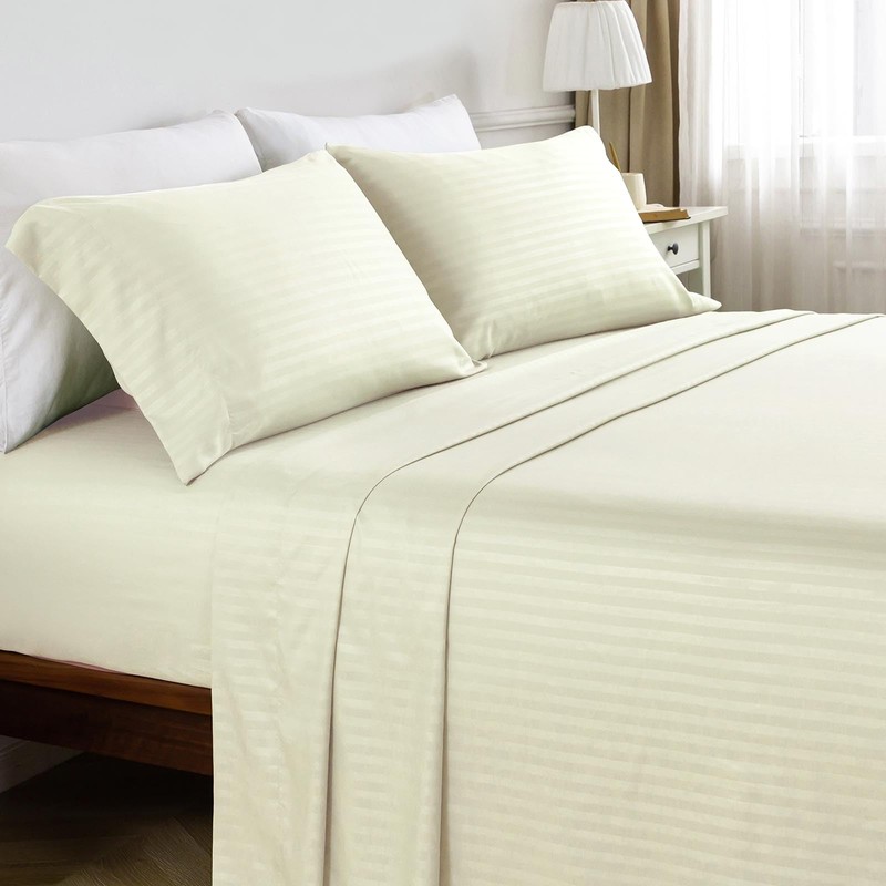- Deep Pockets: The fitted bed sheet features deep pockets and an all-around elastic band to ensure a snug and secure fit on your mattress. This prevents any slipping or bunching, providing a flat and comfortable sleeping surface.