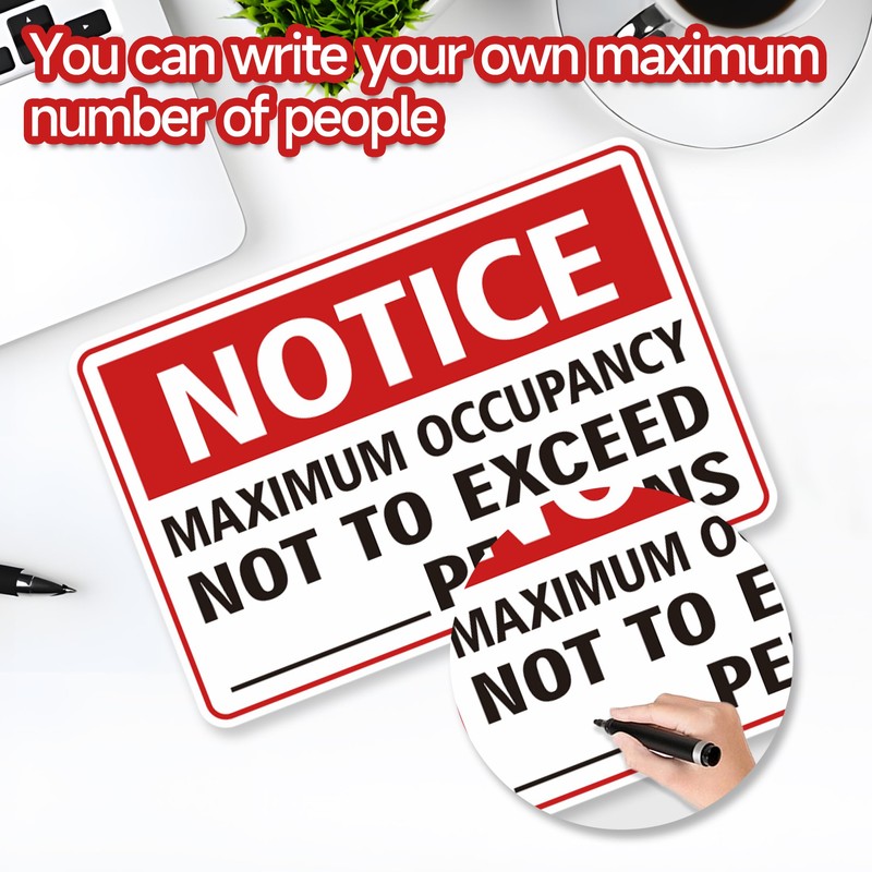 - The rounded corners and burr free corners of Maximum Occupancy Sign have been safely treated. For Easy Mounting is Standard. Suitable for Use Business, Restaurant, Hall, Apartment etc.