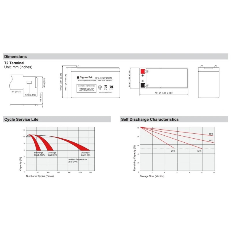 - 12 Volt 12 AmpH, T2 Terminals