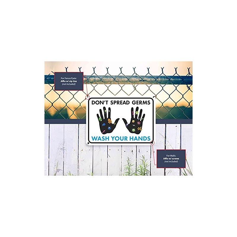 Sign Crush 'Don't Spread Germs, Wash Your Hands' Heavy Duty Plastic PVC Sign, Large 14x10 Black