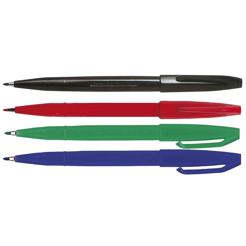 Sign Pen S520 Fibre-Tip Pen Line Width 1 mm (Basic Colours) Black, Red, Green and Blue