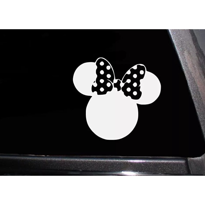 Signage Cafe Minnie Mouse Style Polka Dot Bow - White Vinyl Decal, car window notebook laptop