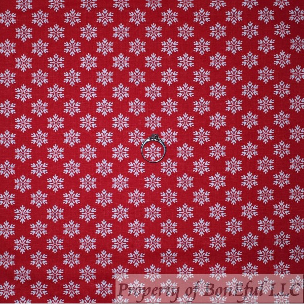 Signature BonEful Fabric Cotton Quilt Red White Snowflake Small Little Calico Winter Print