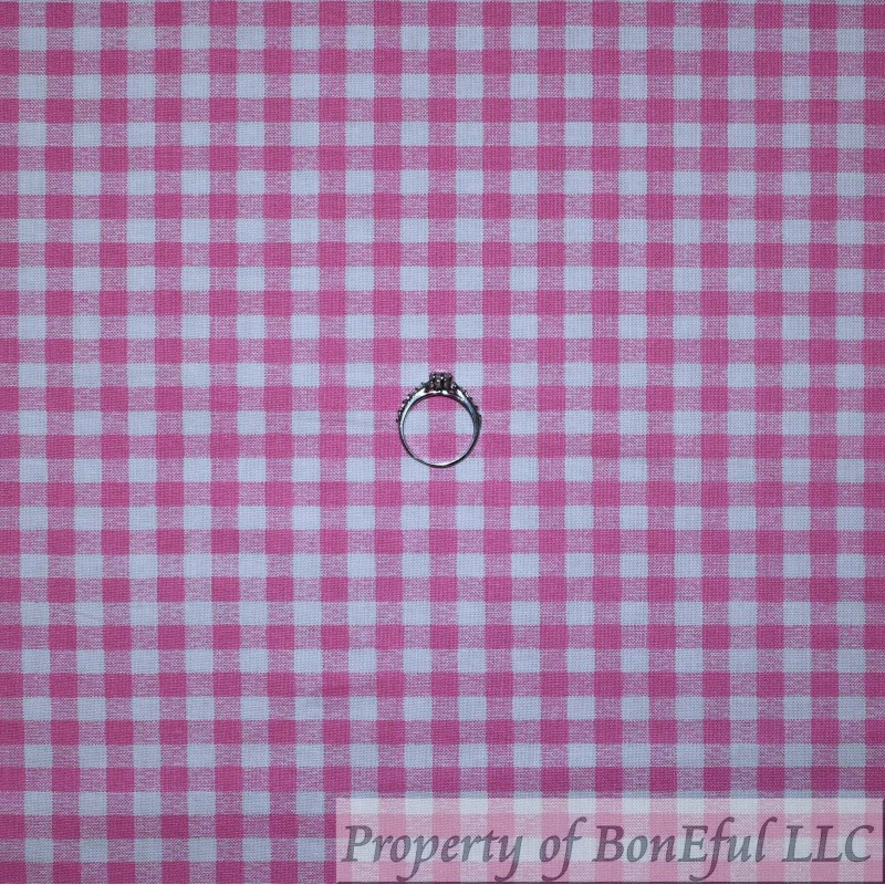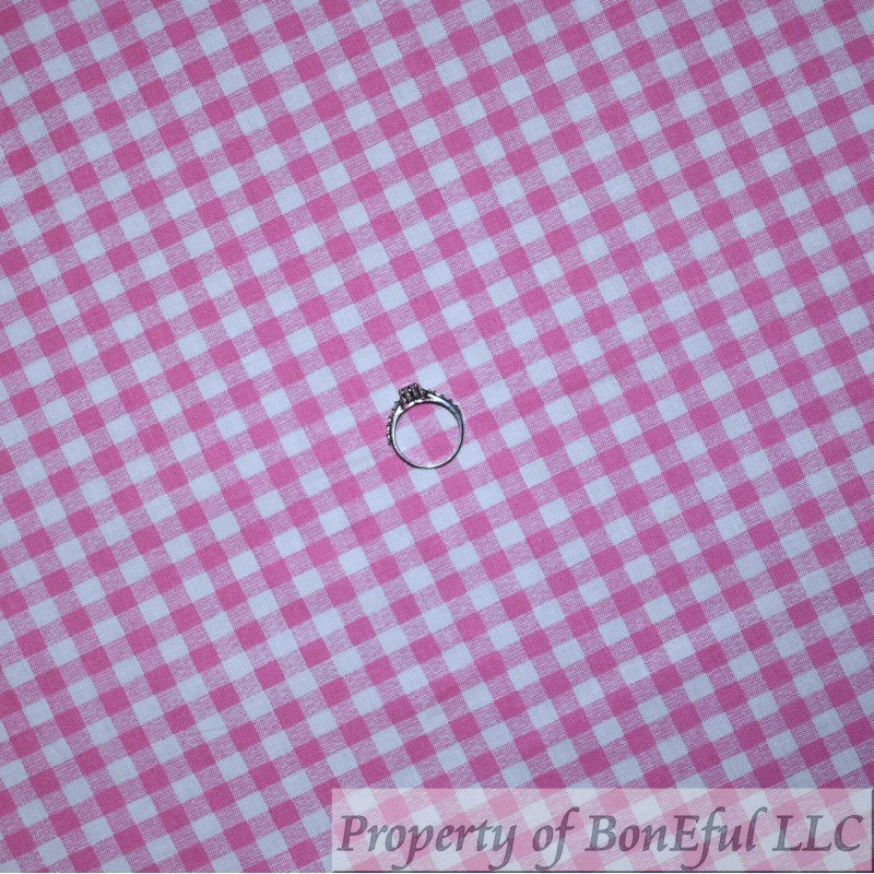 Signature BonEful Fabric FQ Cotton Quilt Pink White Girl Gingham Check Blender Small Print