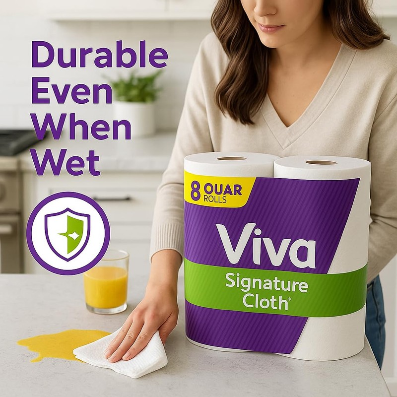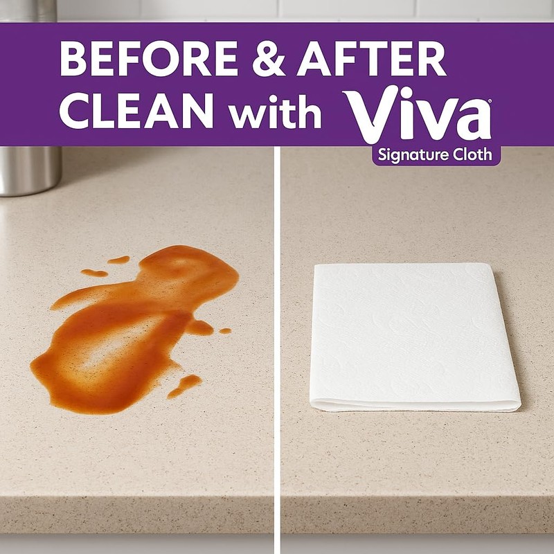 - Cloth-Like Strength – Designed with durable fibers, these viva signature cloth paper towels clean up grease, spills, and messes without tearing—even when wet.