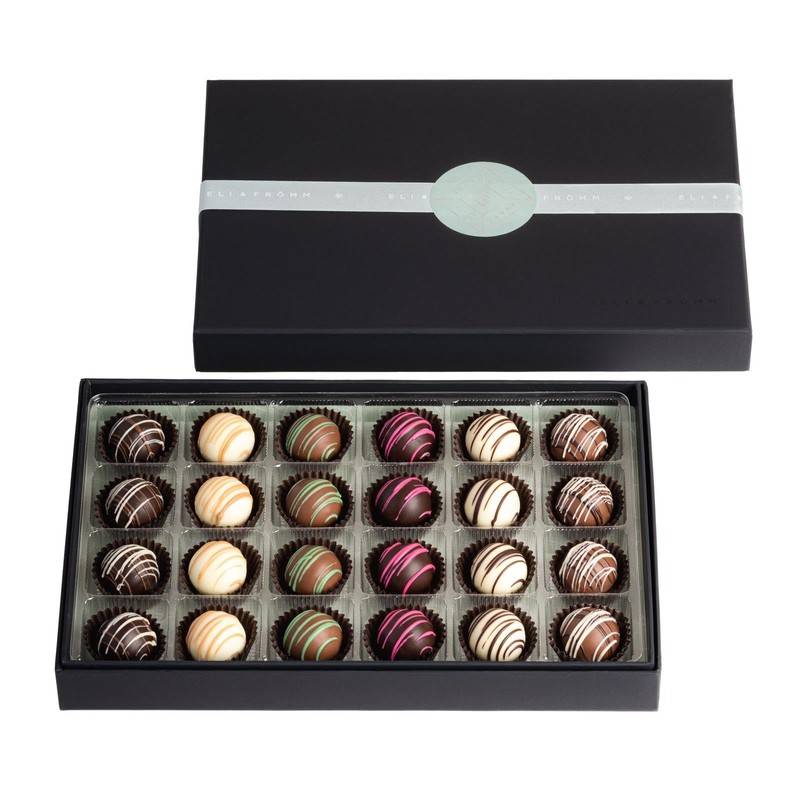 - Assortment: Indulge in a delectable assortment of 24 handcrafted chocolate truffles, including rich dark chocolate, creamy milk chocolate, and luxurious white chocolate varieties.