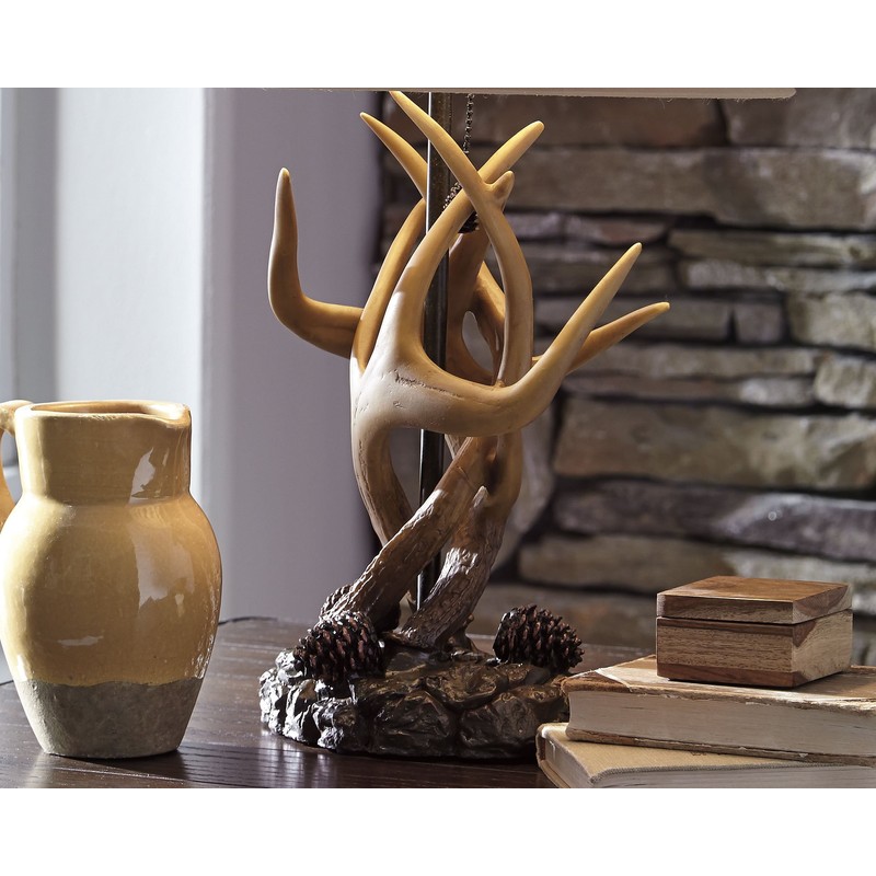 Signature Design by Ashley Derek Rustic Table Lamp with Antler, Pinecone and Rock Accents, 2 Count, Brown
