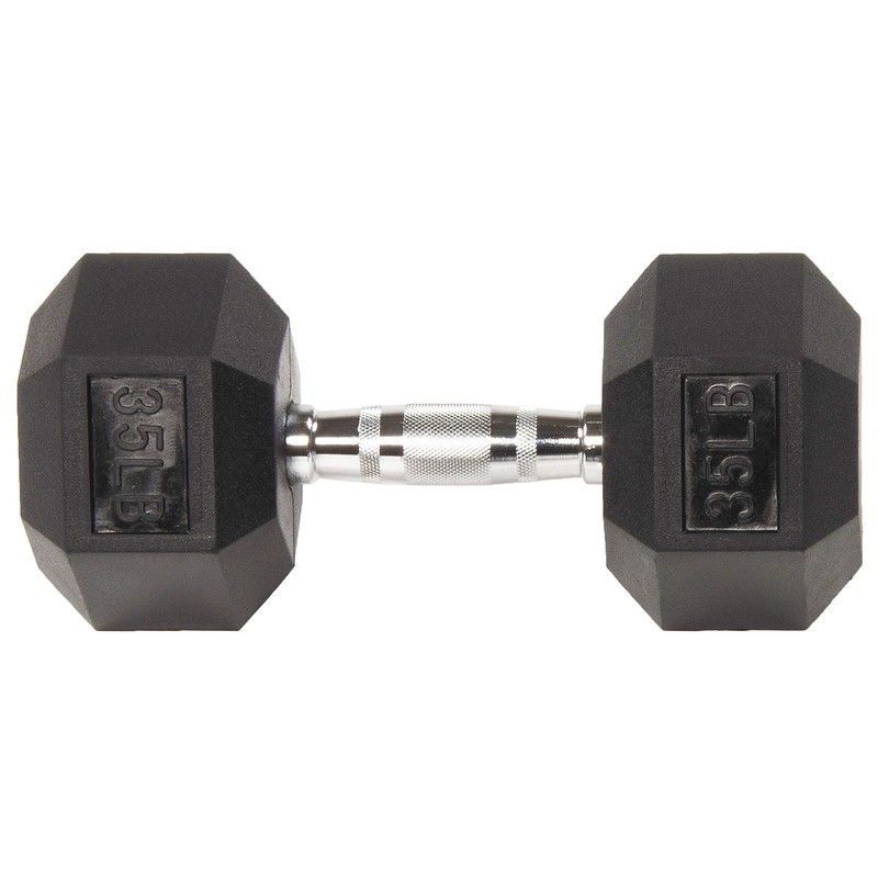 Signature Fitness Rubber Encased Hex Dumbbell, 35LB Single